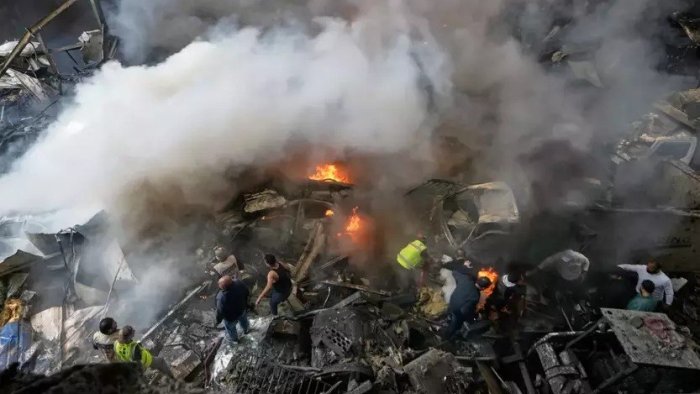 Hava zərbəsi nəticəsində 7 nəfər ölüb, çox sayda insan yaralanıb.