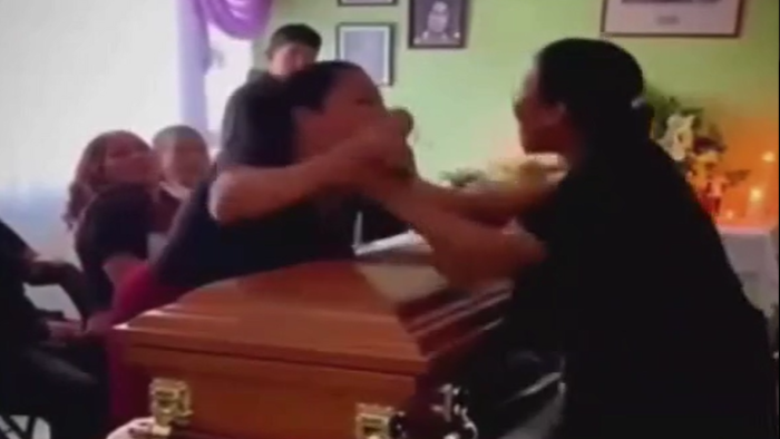 Meksikada mərhumun dul arvadı ilə sevgilisi tabutun yanında dava edib.