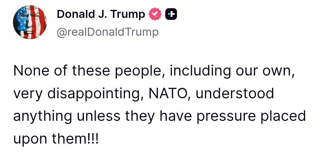 “Məyusedici haldır ki, bu insanların heç biri, o cümlədən NATO onlara təzyiq göstərməyənə qədər heç nəyi başa düşmürlər”, - deyə Tramp bildirib.