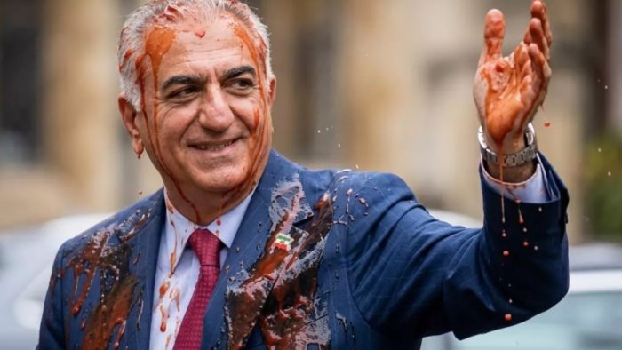 Sürgündə yaşayan İranın keçmiş vəliəhdi Rza Pəhləvi Berlində keçirdiyi mətbuat konfransından sonra naməlum şəxs tərəfindən qırmızı mayeyə bulanıb.