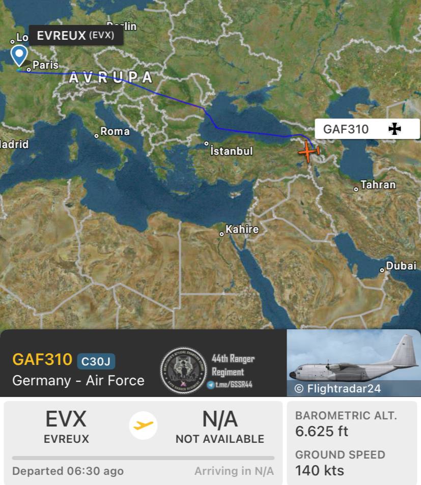 Uçuş trayektoriyasına əsasən, Almaniya HHQ-yə məxsus təyyarə Avropa, Türkiyə və Cənubi Qafqaz üzərindən keçərək İrəvana çatıb.