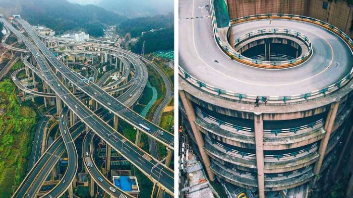 Həmin fotoda əsas yoldan əlavə üçmərtəbəli körpünün fonunda Çunçin şəhəri əks olunub.