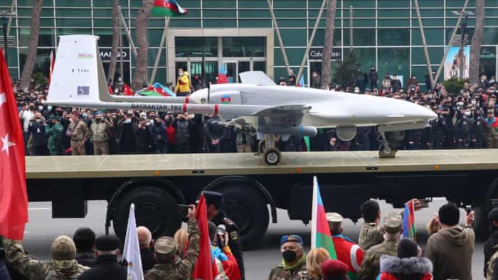 Azərbaycanın yay aylarında Türkiyədən TB2 pilotsuz təyyarələrini almasının qeyd edildiyi məqalədə, Azərbaycan ordusunun TB2-lərdən müharibə ərzində sürətli və səmərəli şəkildə istifadə etdiyini də əlavə edib. Qəzet Azərbaycan tərəfinin TB2-lərin fəaliyyətini əks etdirən videoları sosial şəbəkələrdə və reklam lövhələrində paylaşdığına diqqət çəkib.