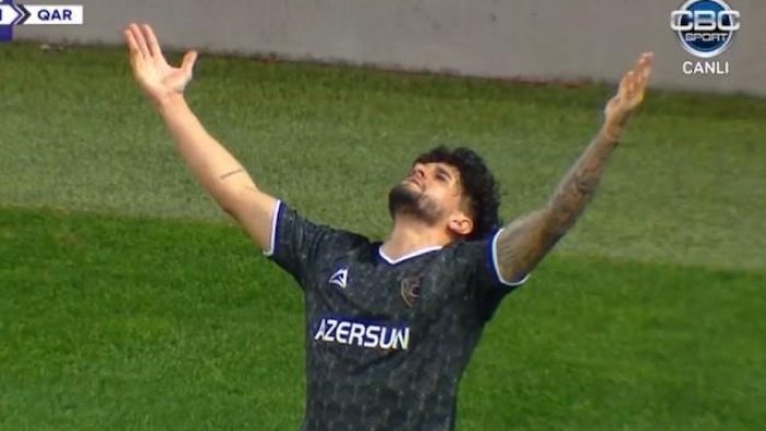 Ağdam klubunun braziliyalı futbolçusu 37-ci dəqiqədə rəqib qapısına yol tapdıqdan sonra yerə oturaraq Tanrıya dua edib.