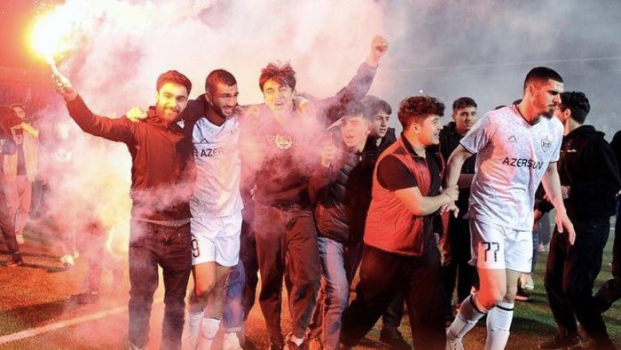 Matçdan sonra “Qarabağ”ın bir qrup azarkeşi meudana girərək futbolçular qələbə sevinclərini bölüşüblər.