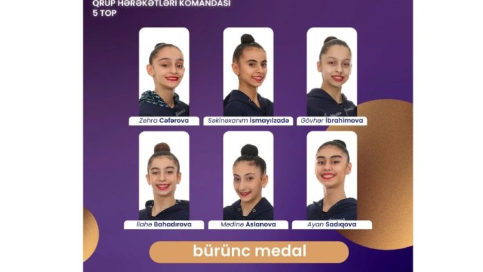 Rumıniyanın Kluj-Napoka şəhərində bədii gimnastika üzrə gənclər arasında keçirilən 2-ci dünya çempionatında Gövhər İbrahimova, Səkinəxanım İsmayılzadə, Mədinə Aslanova, İlahə Bahadırova, Ayan Sadıqova və Zəhra Cəfərovadan ibarət qrup hərəkətləri üzrə yığma komandamızın üzvləri 5 topla hərəkətlərin icrasında bürünc medala layiq görülüb.