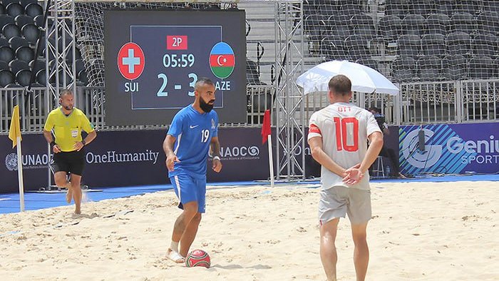 Bizim.Media xəbər verir ki, “Su İdman Sarayı”nın ərazisindəki çimərlik futbolu meydançasında 13-cü yer uğrunda İsveçrə yığması ilə oyun 6:6 hesabı ilə nəticələnib. Penalti seriyasını daha dəqiq yerinə yetirən millimiz yekunda 5:4 hesabı ilə qələbə qazanıb.