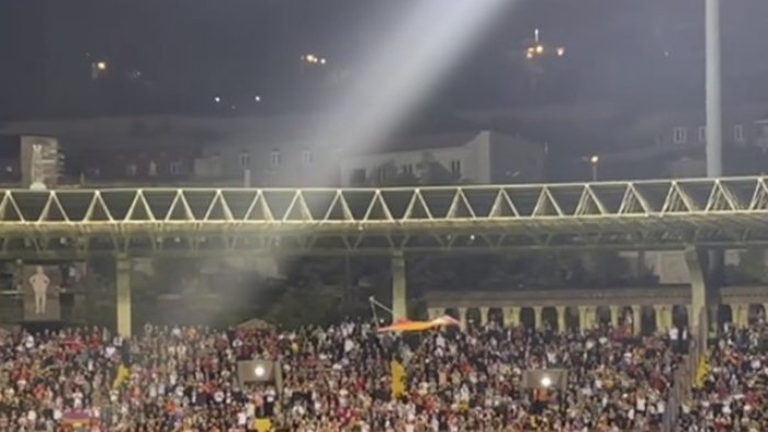 Bizim.Media xəbər verir ki, matçın ilk hissəsinin sonlarına doğru meydanda dronla Qarabağdakı qondarma rejimin “bayrağı” uçurdulub.