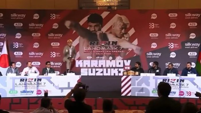 Bizim.Media “Qafqazinfo”ya istinadən xəbər verir ki, konfransda Azərbaycan MMA döyüşçüsü Vüqar Kərəmovun yaponiyalı rəqibi Çihiro Suzuki qalmaqallı hərəkətləri ilə yadda qalıb.