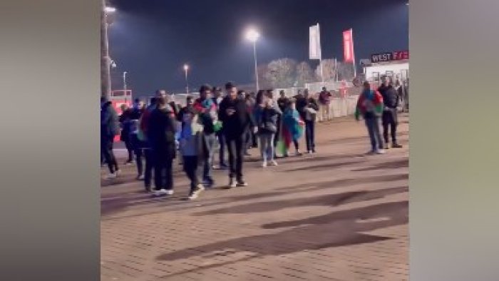 Bizim.Media xəbər verir ki, Azərbaycanlı azarkeşlər "Bay Arena"nın qarşısında toplaşaraq, doğma komandaya dəstəklərini hələ oyun başlamazdan əvvəl nümayiş etdiriblər.