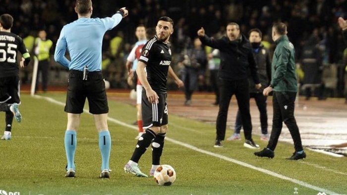 Bizim.Media xəbər verir ki, buna 23 yaşlı cinah müdafiəçisinin Bakıda “Braqa”ya qarşı keçirdikləri Avropa Liqasının pley-off mərhələsinin cavab matçında (2:3, əlavə vaxtda) hakimi təhqir etməsi səbəb olub.