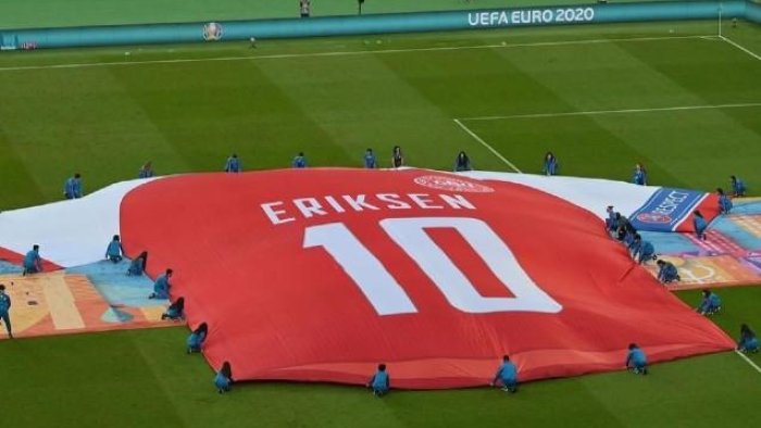 Bununla da, Avro-2020-nin qrup mərhələsinin ilk turunda Finlandiya ilə matçda huşunu itirən Danimarka yığmasının üzvü Kristian Eriksenin forması arenada göstərilib.