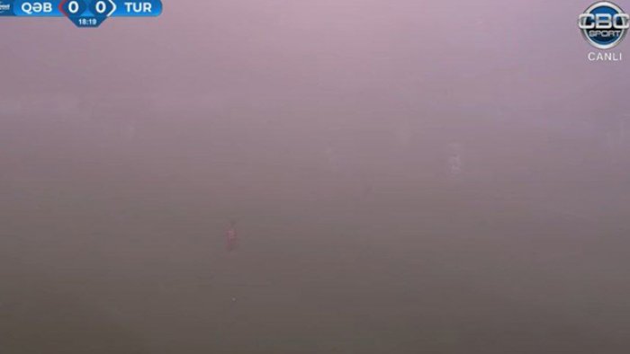 Buna səbəb matçın keçirildiyi Qəbələ şəhərində qatı duman olmasıdır.