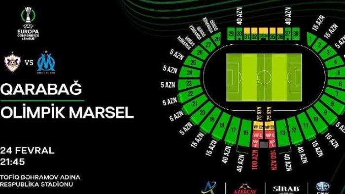 UEFA Avropa Konfrans Liqasının pley-off mərhələsində keçiriləcək “Qarabağ” – “Marsel” (Fransa) oyununun biletləri fevralın 13-ü saat 11:00-dan satışa çıxarılacaq.