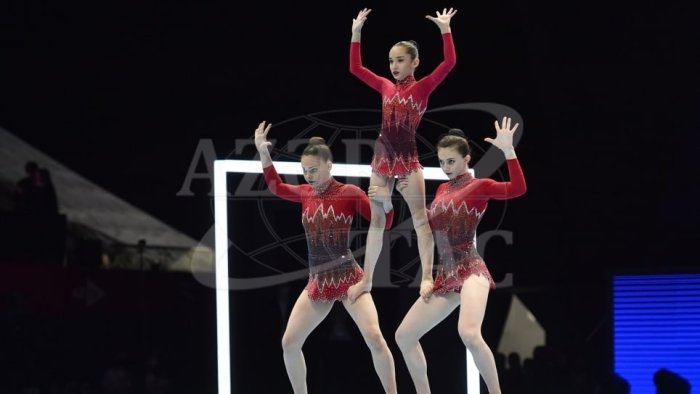 Leyla Bəşirova, Nəzrin Fərmanova və Mənsumə Məmmədzadədən ibarət qadın qrupumuz Bakıda keçirilən akrobatika gimnastikası üzrə 12-ci dünya yaş qrupları yarışlarının finalına yüksəlib.