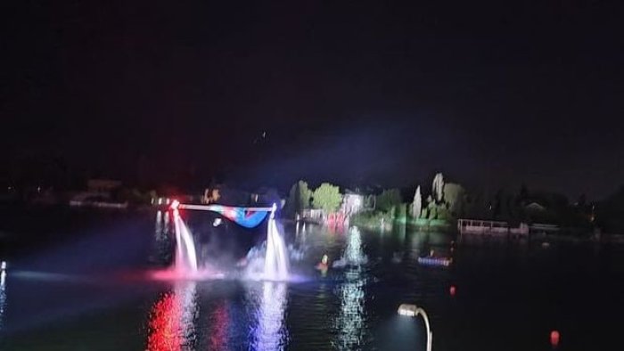 Bizim.Media xəbər verir ki, Mingəçevirdəki “Kür” Olimpiya Tədris-İdman Mərkəzində təşki olunan tədbirdə Heydər Əliyevin həyat və fəaliyyətinə həsr edilən su üzərində 3D effektli şou təqdim edilib.