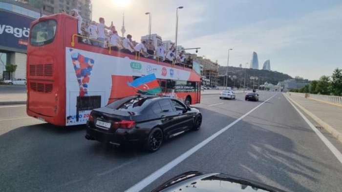 Bizim.Media xəbər verir ki, Hüseyn Cavid parkının yanından yola düşən avtobus və milli komandanın üzvləri, eləcə də azarkeşlər şəhər turu çərçivəsində “Flame Towers”, Qoşa Qala qapısı, Qız qalası, Azneft meydanı və Bayraq meydanı istiqamətində marşrut üzrə hərəkət edib. Avtobus Zəfər Parkı ilə hərəkət edərək Ağ Şəhər Bulvarında dayanəb.
