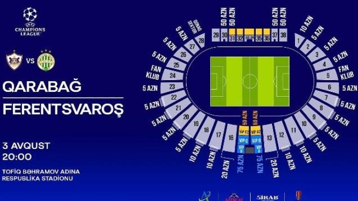 Qeyd edək ki, “Qarabağ”la “Ferentsvaroş” arasında ilk görüş avqustun 3-də Bakıda, Tofiq Bəhramov adına Respublika stadionunda keçiriləcək. Oyun saat 20:00-da başlayacaq. Cavab görüşü isə avqustun 9-u Budapeştdə oynanılacaq. Bu qarşılaşmaya da yerli vaxtla saat 20:00-da (Bakı vaxtı ilə 22:00) start veriləcək.