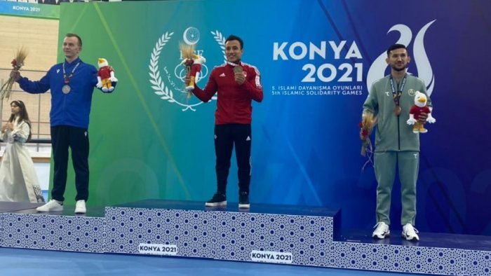 Türkiyənin Konya şəhərində təşkil olunan V İslam Həmrəyliyi Oyunlarında kişi idman gimnastikası yarışları davam edir.