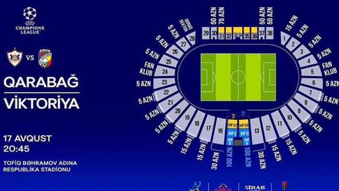 UEFA Çempionlar Liqasının pley-off mərhələsində keçiriləcək “Qarabağ” - “Viktoriya” (Çex Respublikası) matçına bilet satışı davam edir.