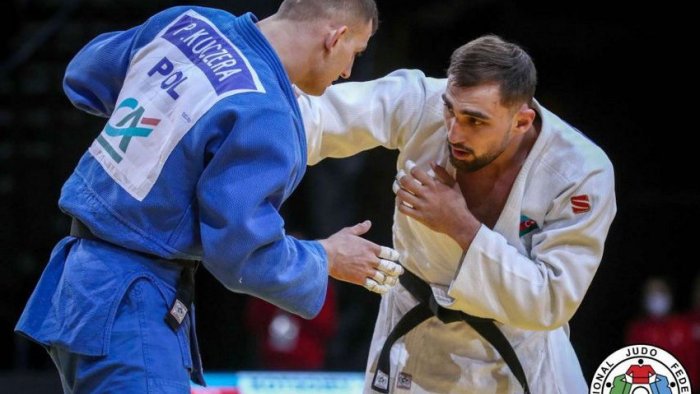 Bizim.Media xəbər verir ki, 100 kq çəki dərəcəsində çıxış edən idmançı 1/4 final mərhələsində mundialın son qalibi Jorje Fonsekanı (Portuqaliya) məğlub edib.
