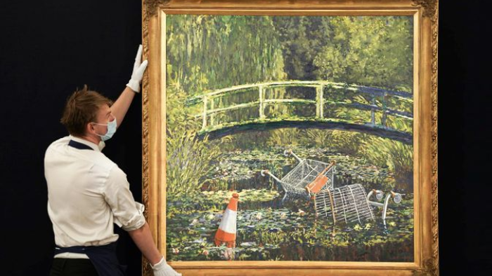 Qeyd olunub ki, Benksinin "Mənə Moneni göstər" əsəri Klod Monenin şah əsərinə dəcəl bil dönüşdür. Rəsm əsəri 8 dəqiqə ərzində təxmin edilən qiymətdən qat-qat üstün satılaraq 7 551 600 funt sterlinq (9 814 353 dollar) məbləğində gəlir gətirib.