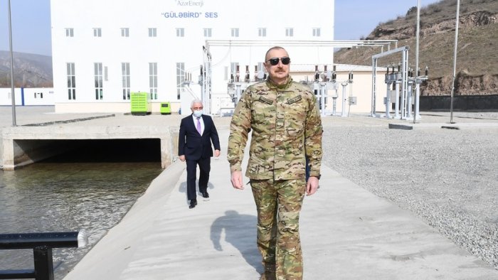 "Bu gün isə Laçın rayonunun cənub hissəsindəyik, Güləbird kəndinin ərazisində. Bu gün Güləbird kəndində Su Elektrik Stansiyasının açılışıdır. Laçın rayonu işğaldan azad olunandan heç iki ay keçməmiş – ay yarımdan sonra artıq burada Su Elektrik Stansiyası istismara verilir.