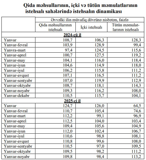 Ötən illə müqayisədə Azərbaycanda tütün məmulatlarının istehsalında 13,2 faiz, içki istehsalında isə 1,6 faiz azalma qeydə alınıb.