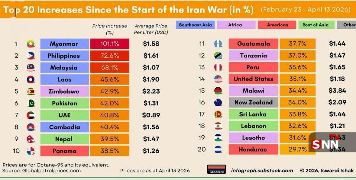 Həmçinin Qvatemala, Tanzaniya, Peru, Malavi, Yeni Zelandiya, Şri-Lanka, Livan, Lesoto və Hondurasda da yanacaq qiymətlərində ciddi bahalaşma baş verib.