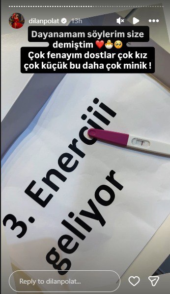Dilan Polat bu sevincli xəbəri ilk olaraq əri Engin Polata və uşaqlarına xüsusi bir sürprizlə çatdırıb. Şam yeməyi zamanı Polat desert təqdim edərək masanın üstündəki hamiləlik testini göstərib və ailəsinin reaksiyasını lentə alıb.