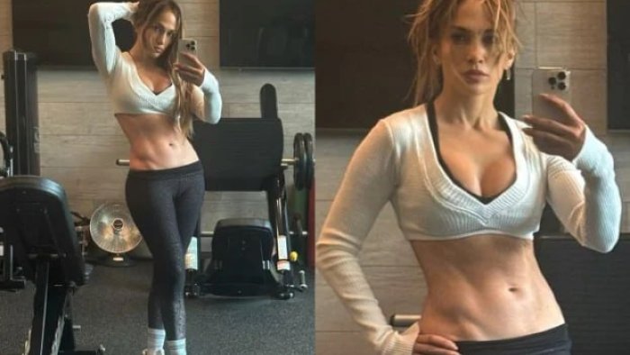 Lopez dərin sinə dekolteli qısa ağ sviterin altından qara idman formasında və ağ idman ayaqqabısında kamera qarşısına keçib. Fotolarda o, qarın əzələlərini xüsusi vurğulayaraq fit görünüşü ilə seçilib.