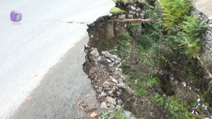Şəkidə son günlər yağan yağışlar ərazidən keçən Dəyirman çayının istinad divarını dağıdıb, su yolun yarısını yuyub. Yolaltı torpaq yuyulduğundan asfalt örtüyü təhlükəli vəziyyətə düşüb.