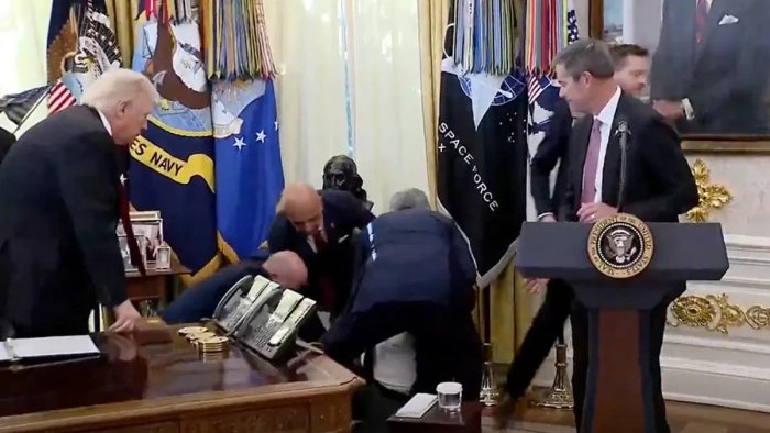 ABŞ prezidenti Donald Tramp Oval kabinetdə açıqlama verməyə hazırlaşarkən gözlənilməz vəziyyətlə üzləşib.