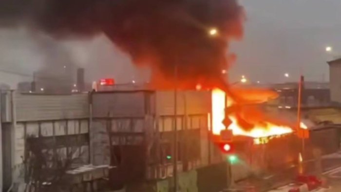 Moskvada "Rijski" bazarı yaxınlığında anbarlar YANIR - VİDEO