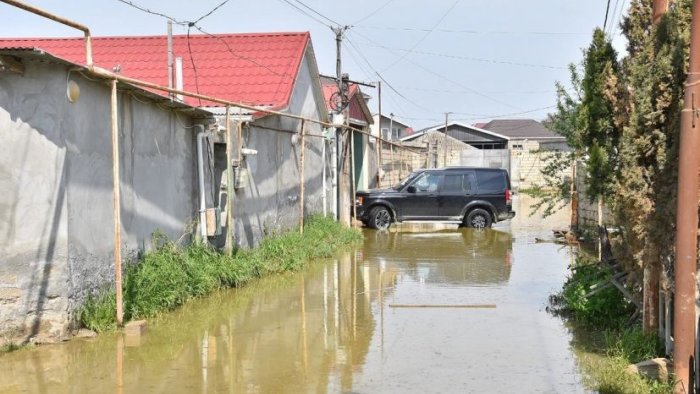 Paytaxtın Xəzər rayonu, Binə qəsəbəsində həyətləri su basıb.