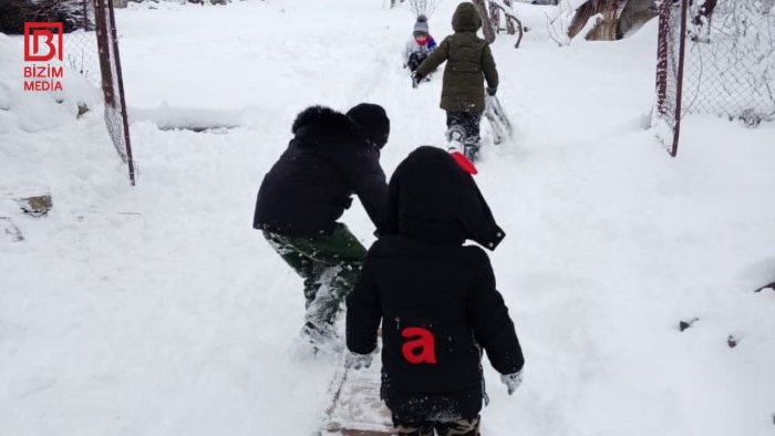 Belə ki uşaqlar valideynləri tərəfindən hazırlanmış xizəklərlə sürüşür, əylənirlər. Bu görüntülər nostalji hisslər yaradıb.
