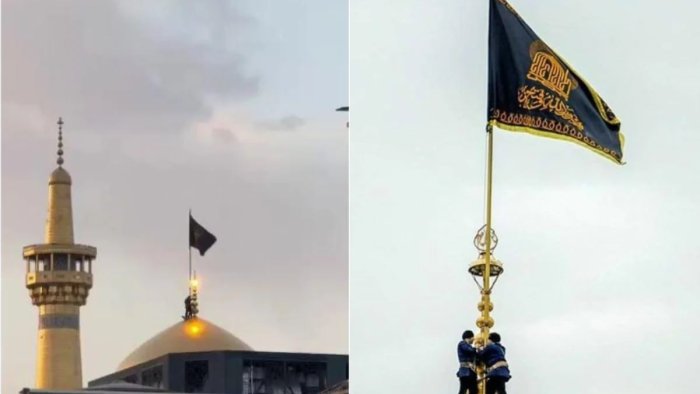 İranın şimal-şərqindəki Məşhəd şəhərində yerləşən İmam Rza məscidinin günbəzi üzərində ölkənin mərhum ali ləhbəri Əli Xameneinin öldürülməsindən sonra qara matəm bayrağı qaldırılıb.