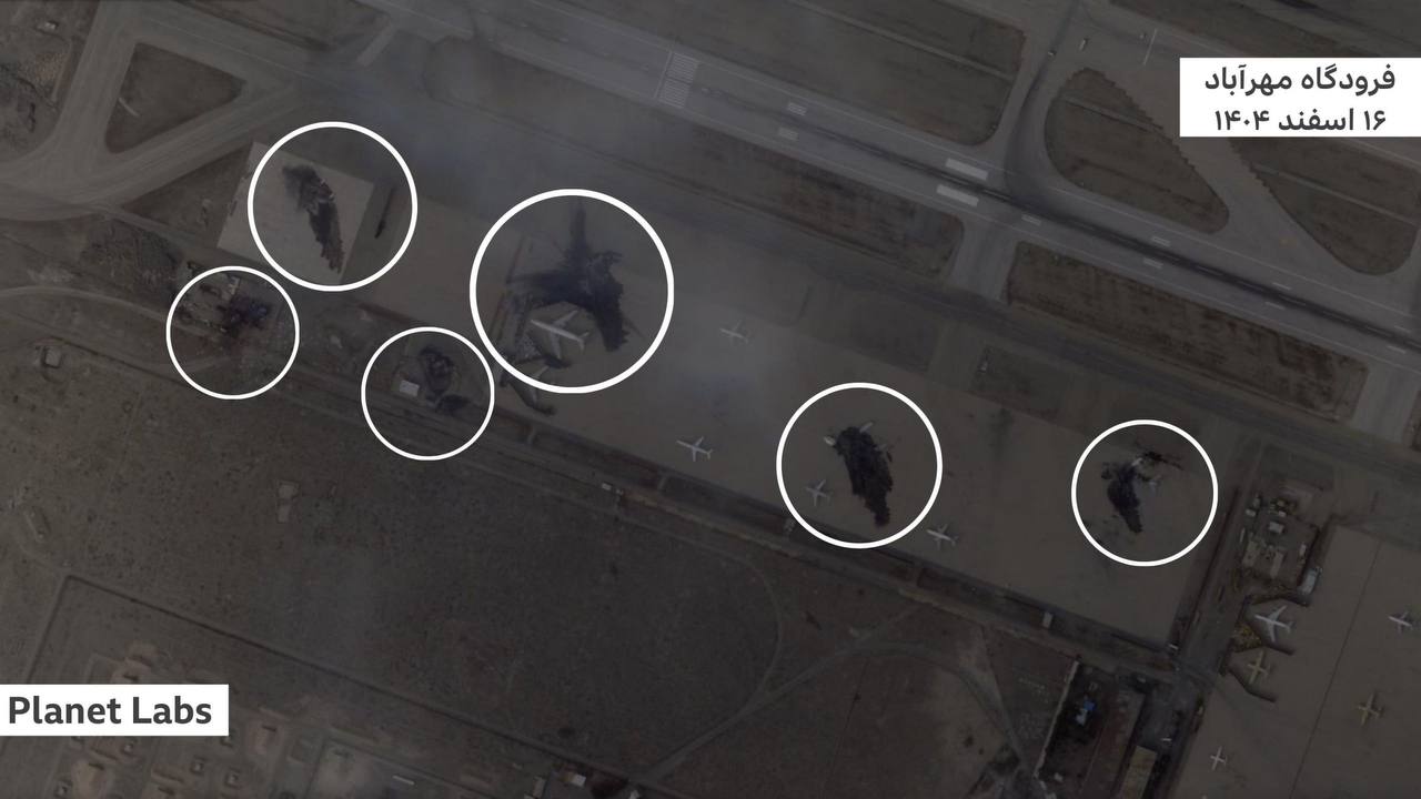 Peyk görüntüləri göstərir ki, İsrailin səhər saatlarında Tehranın Mehrabad hava limanına endirdiyi zərbələr nəticəsində İranın ən azı 17 təyyarəsi zədələnib. Məlumata görə, həmin təyyarələrdən bəziləri tamamilə məhv edilib.
