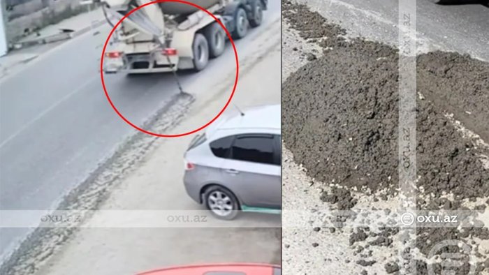 Görüntülərdə "Baksol yolu" deyilən ərazidən keçən 77-XS-192 nömrə nişanlı betonqarışdıran maşından asfalt örtüyünə beton dağılması, sürücünün buna baxmayaraq, nəqliyyat vasitəsini saxlamaması əks olunub.