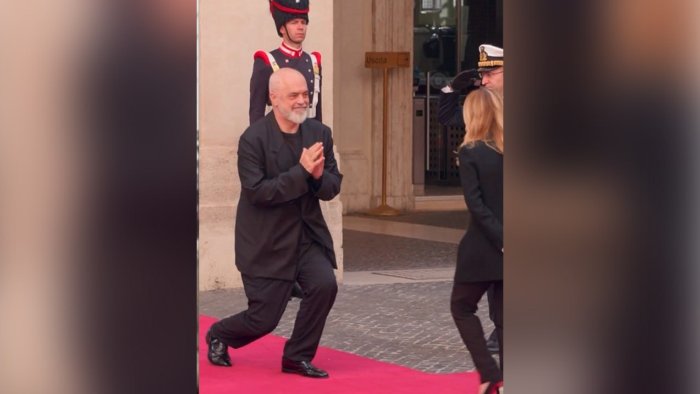 Albaniyanın Baş naziri Edi Rama Romaya rəsmi səfəri zamanı italiyalı həmkarı Corciya Melonini salamlamaq üçün növbəti dəfə onun qarşısında diz çöküb.