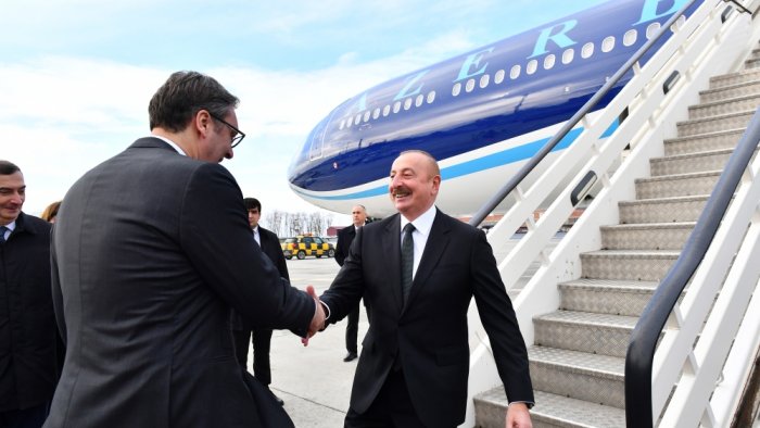 Dövlət başçısını Serbiya Respublikasının Prezidenti Aleksandar Vuçiç qarşılayıb.
