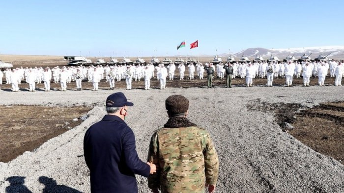 Bizim.Media xəbər verir ki, Azərbaycanın müdafiə naziri general-polkovnik Zakir Həsənov, Türkiyənin milli müdafiə naziri Hulusi Akar, Türkiyənin Baş Qərargah rəisi ordu generalı Yaşar Güler, Quru Qoşunları komandanı ordu generalı Musa Avsever, Hərbi Hava Qüvvələri komandanı ordu generalı Atilla Gülan, Hərbi Dəniz Qüvvələri komandanı donanma admiralı Ercüment Tatlıoğlu və Azərbaycanın yüksək rütbəli zabitləri Azərbaycan-Türkiyə birgə təlimini izləyib. Report-az-ın məlumatına görə, hazırda təlim davam edir.
