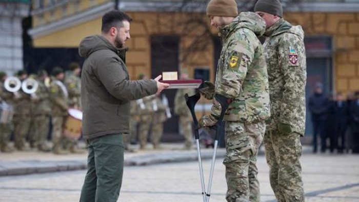 Zelenski görüş zamanı əsgərləri və müharibədə həyatını itirən döyüşçülərin yaxınlarını dövlət medalı ilə təltif edib.