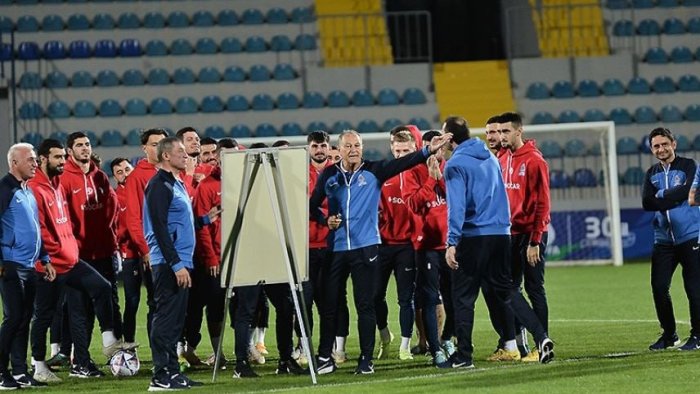 Ancaq martın 26-na planlaşdırılan “Qarabağ” - “Qalatasaray” oyununa görə ot örtüyünün qorunması üçün məşqin yeri dəyişdirilib. Belə ki, futbolçular 8-ci kilometr stadionunda hazırlıq keçiblər. Anton Krivatsyuk, Mahir Emreli və Özancan Kökcüdən başqa bütün futbolçular hazırlıqda iştirak ediblər. Milli komandamız tam heyətlə ilk məşqini martın 21-də keçirəcək.