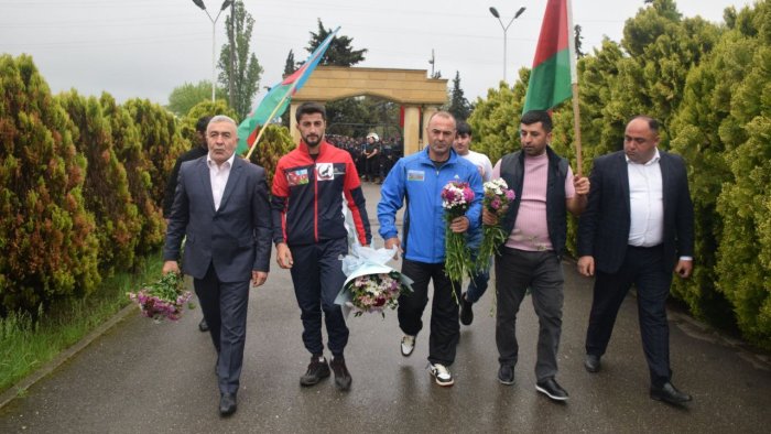 Qarşılanmadan sonra qalib Zəfər Abdürrəhmanov idmançılarla birgə Quba Şəhidlər Xiyabanında Azərbaycanın müstəqilliyi uğrunda həyatından keçən igid şəhidlərimizin xatirəsini ehtiramla anaraq, məzarlarını ziyarət edib.