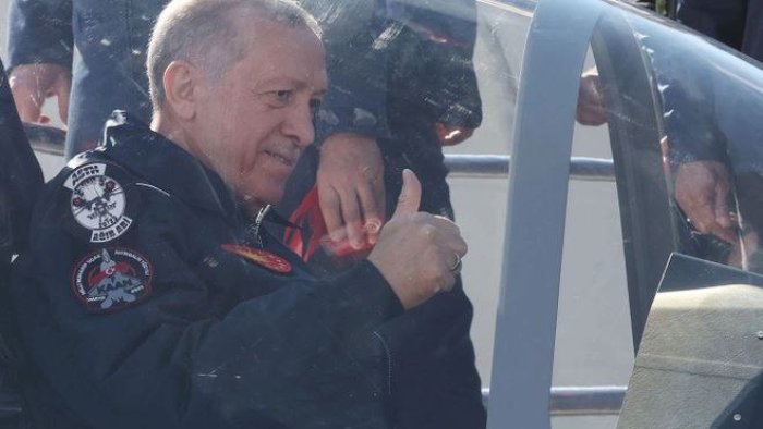 Milli döyüş təyyarəsinin rəsmi adının “KAAN” olduğunu açıqladıqdan sonra Ərdoğan onun kabinəsinə minib.