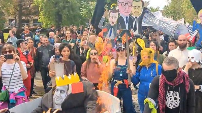 Mayın 1-də Fransanın Strasburq şəhərində pensiya islahatlarına qarşı keçirilən etiraz aksiyasında yerli sakinlər Prezident Emmanuel Makronun müqəvvasını yandırıblar.
