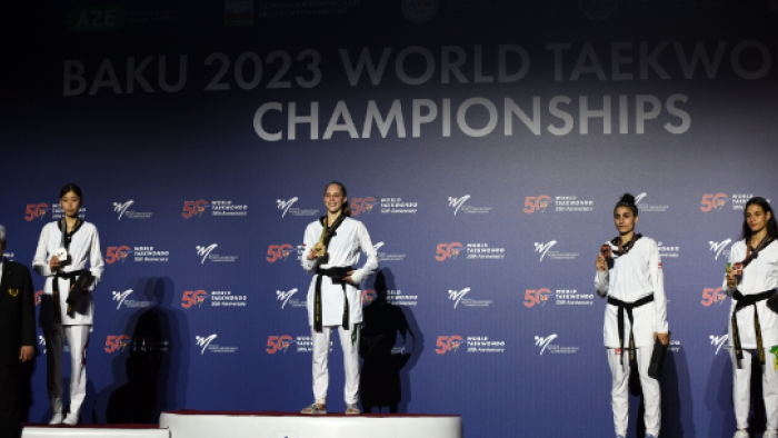 Qeyd edək ki, Ulu Öndər Heydər Əliyevin 100 və Dünya Taekvondo Federasiyasının 50 illiyinə təsadüf edən çempionat “Öz gücünü alovlandır” şüarı altında təşkil olunub. İyunun 4-dək davam edəcək 26-cı dünya çempionatında 145 ölkədən 949 taekvondoçu 16 çəki dərəcəsində mübarizəyə qoşulub.