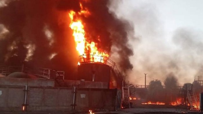 İlkin ehtimallara görə, ərazidə olan yanacaq çənləri yanır.