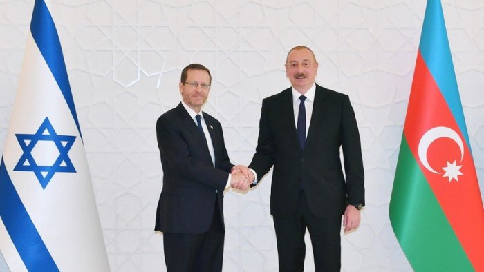 “Görüş zamanı Azərbaycan Prezidenti İlham Əliyev Hersoqa dərin təşəkkürünü bildirib, şərəf və ehtiram əlaməti olaraq ona gözəl toxunmuş xalça hədiyyə edib. İsrail Azərbaycanla bir neçə ildir müxtəlif səviyyələrdə sıx əlaqələrə malikdir. Ziyarət edən dövlət başçıları və digər nüfuzlu şəxslər Hersoqla təkbətək görüşən zaman xalçaya baxmaq imkanı əldə edəcəklər”.